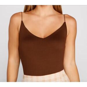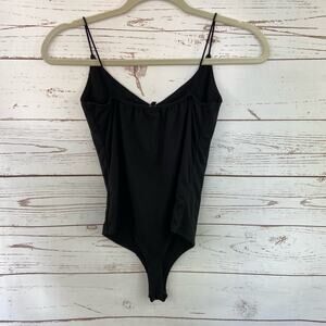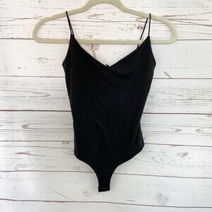 Windsor M Black Thin Bungee Spaghetti Strap Vneck Fitted Bodysuit