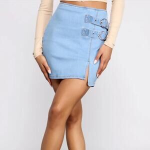 Windsor M Light Blue High Rise Double Buckle Slit Mini Denim Skirt