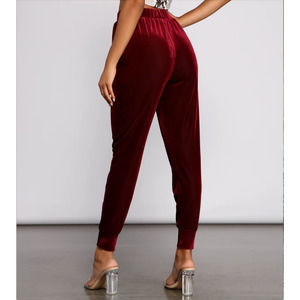 NWT Windsor M Maroon High Waist Luxe Velvet Straight Leg Pants