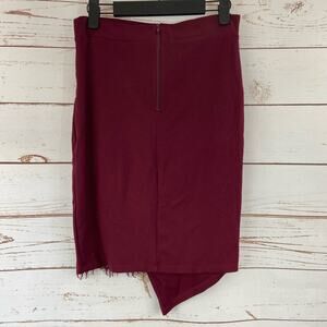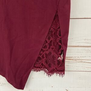 Windsor M Maroon Peek A Boo Lace Asymmetrical High Rise Pencil Midi Skirt