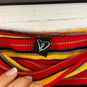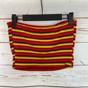Windsor M Red Yellow Stripe Strapless Ribbed Cropped Tube Top