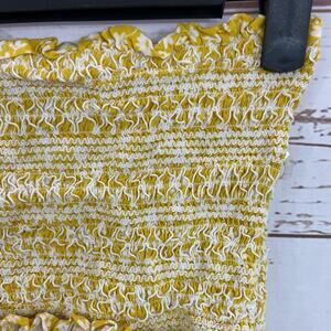 Windsor M Yellow Floral Smocked Ruffle Hem Strapless Cropped Tube Top