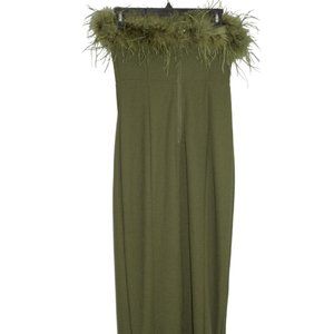Windsor Medium Olive Green Monica Formal Dress Feather Trim Strapless Split Long