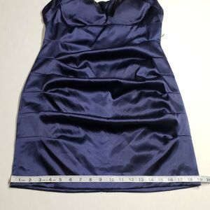 Windsor Metallic Blue Satin Side Pleats Tie Around Bodycon Dress Size 13 NWT
