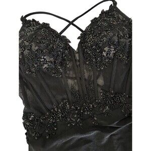 Windsor Millie Satin Sequin Lace-Up Mini Homecoming Formal Black Dress XS NEW