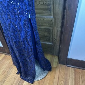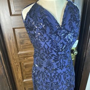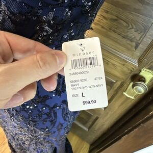 Windsor Navy Maxi Wedding Dress Sz Large Gown Evening Sequin Floral Party NWT
