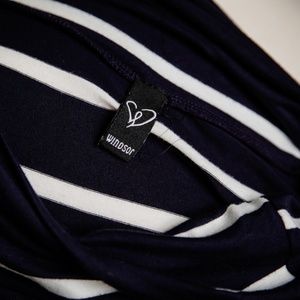 The Windsor Navy Striped Skirt is a printed piece that can be dressed up or down.