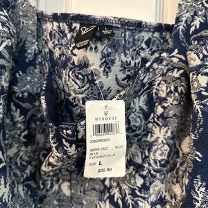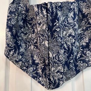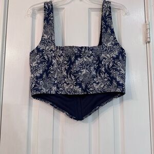 Chic crop top with a floral pattern. Features a stylish navy and white design. Ideal for casual outings.