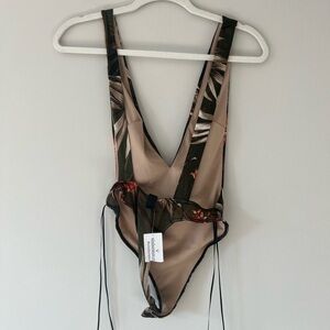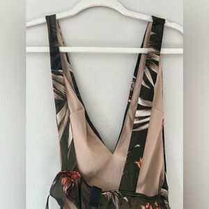 Windsor Olive Green Floral Tropical Strappy Deep V Bodysuit NWT Size XS