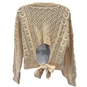 Windsor Open Back Tie Sweater M | Chunky Cable Knit Cream Tan Fall Cozy NWT