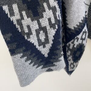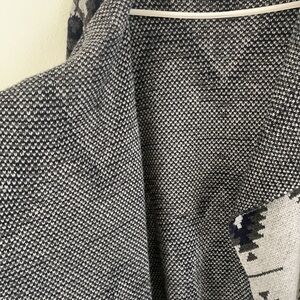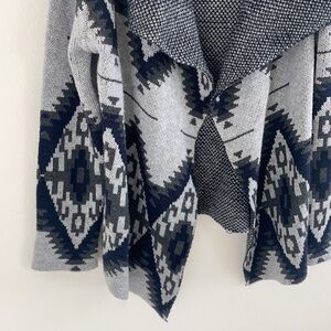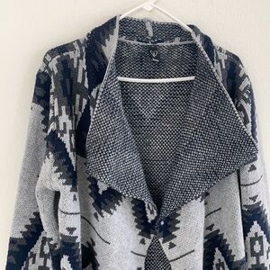 Windsor Open Cardigan. Front waterfall look Aztec print knit material chunky and cozy. Shorter back longer front look
