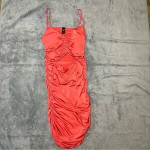 Windsor Pink Coral Ruched Bodycon Mini Dress Ruched Strap Glam Party Dress Sz S