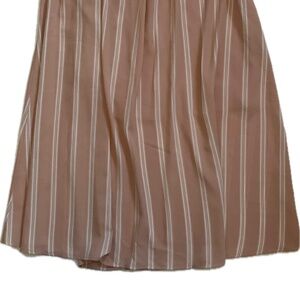 High waist, knee-length skirt in woven fabric with a striped printed pattern. Pleats at front, elastic at back of waist, with side pockets. $24