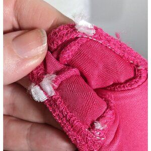Light wear on the fabric around the neckline near the straps. The white ribbons on the inside that are used to hang the dress when not in use have been cut off. One rhinestone is missing from one of the straps.