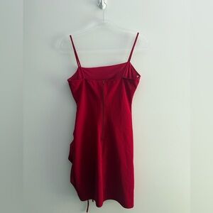 Chic red mini dress with ruched side. Perfect for a night out. Sleek and stylish design. Never worn before.