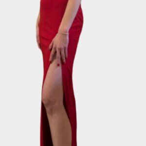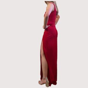 This dress is perfect for a formal Valentine's Day party or prom! It has a high-cut slit in the front, square neckline, and back zipper. It was only worn once and no alterations were done. A sticky bra is recommended.