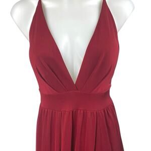 Windsor Red Sleeveless Plunging V Neck Pleated Bridesmaid A Line Maxi Dress S