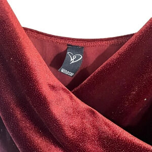 Windsor Red Sparkle Glitter Bodycon Dress Small Velour Draped V Neck Spaghetti Straps