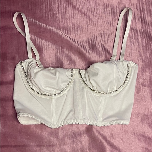 New without tags. Super cute white crop top with rhinestones. Size: S. Feel free to bundle and save! 💎
