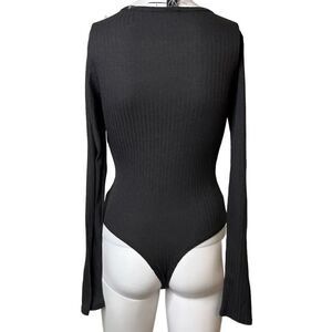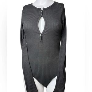 Windsor Ribbed Long Sleeve Body Suit Charcoal Grey Size Small