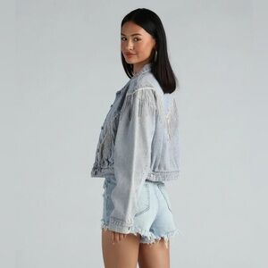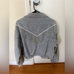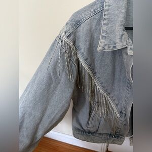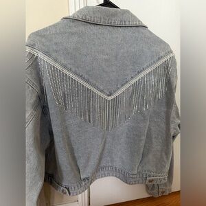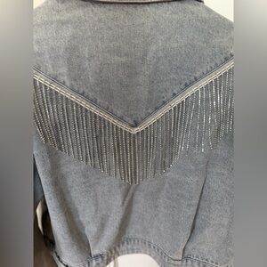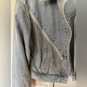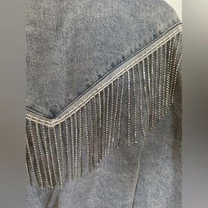 Windsor Rocker-Chic Rhinestone Fringe Denim Jacket, size L