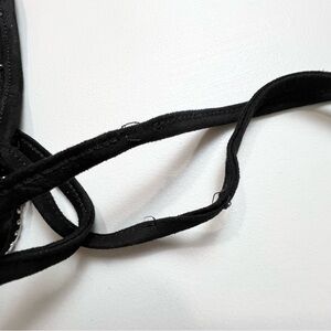 In very good pre owned condition, the bottom strings each have a small section where the stitching is coming undone, as shown in photo