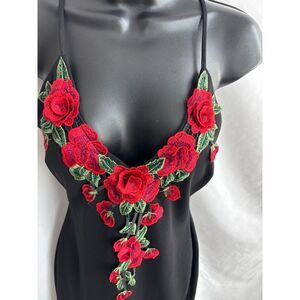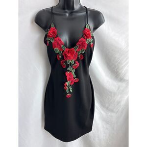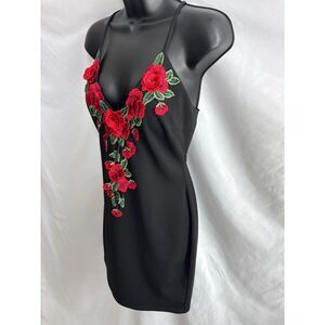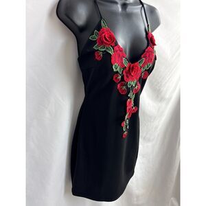 Windsor Rose Embroidered 3D Mini Bodycon Cocktail Dress Black Size L Floral Sexy