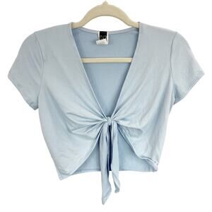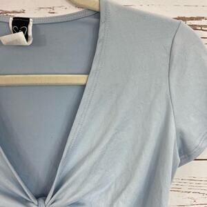 Windsor S Baby Blue Tie Up Knot Front V-neck Short Sleeve Crop Top