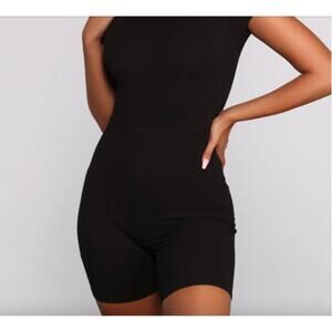 Windsor S Black Short Sleeve Mock Neck Biker Short Romper