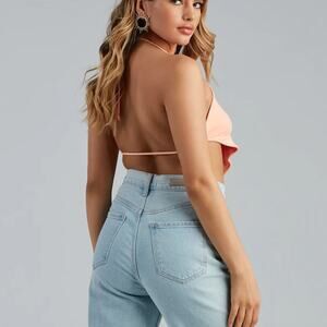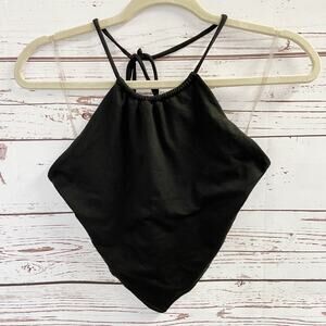 Windsor S Black So Hawt Halter Open Back Handkerchief Crop Top
