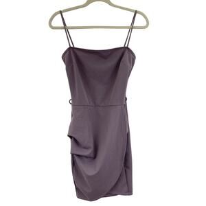 Windsor S Dusty Purple Ruched Faux Wrap Square Neck Mini Cocktail Dress