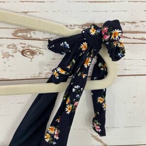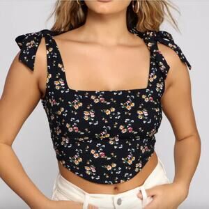 Windsor S Navy Floral Square Neck Tie Straps Smocked Crop Top