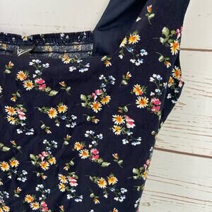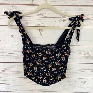 Windsor S Navy Floral Square Neck Tie Straps Smocked Crop Tank Top