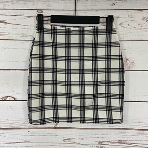 Windsor S White Black Plaid Checkered Gingham Knit Slit High Rise Mini Skirt