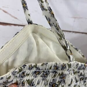 Windsor S White Floral Twist Keyhole Smocked Spaghetti Strap Cami Crop Top