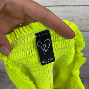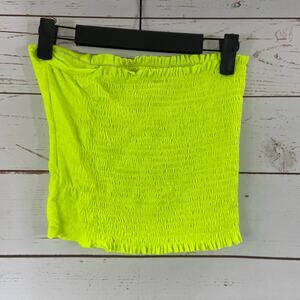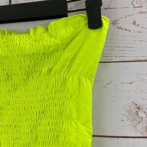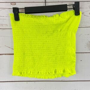 Windsor S/M Bright Neon Yellow Smocked Ruffle Trim Strapless Cropped Tube Top