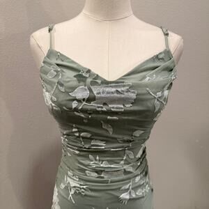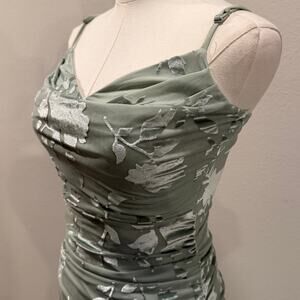 Windsor Sage Green Burnout Velvet Floral Ruched Midi Dress Small Fairy Wedding