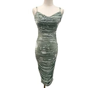 #FloralDress #RuchedDress #SageGreen #BodyconStyle #WeddingGuest