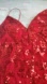 Shimmer in this stunning scarlet mini dress. Ideal for parties. Features elegant sequin design. It's a short, fitted dress with an elegant and eye-catching style. The vibrant red sequins make it perfect for parties, special events, and celebrations. It features a deep V-neck, thin straps, and a fitted bodice.