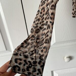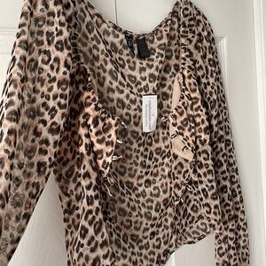 Windsor Sheer Cheetah Print Lace Up Blouse