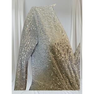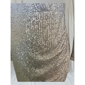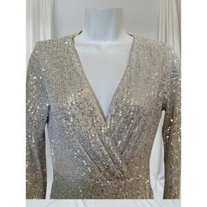 Windsor Silver Sequin Long Sleeve Surplice Mini Dress Size L