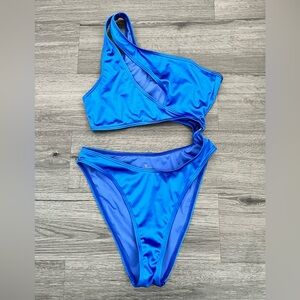 Windsor Size Small One Shoulder Night Swim Satin One Piece Swimsuit Royal Blue