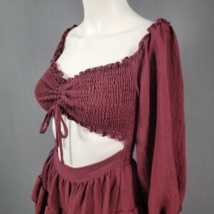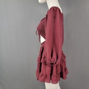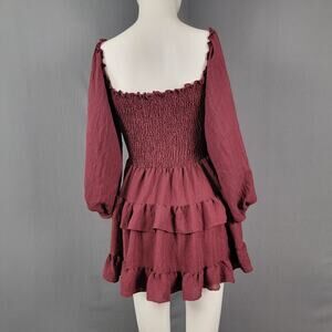 This Windsor smocked dress is made for effortless style and seasonal versatility. Crafted in a deep burgundy shade with a fully ruched bust, stretchy bodice, and statement long sleeves with elastic cuffs. The lightweight woven fabric gives it movement, and the ruffled tiered skirt brings a flirty, festival-ready energy. Whether you're styling it for fall, a casual night out, or a music event, this dress delivers comfort and drama in equal measure.