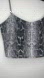Stylish snake print crop top. Features bold black and white pattern. Perfect for a trendy look.