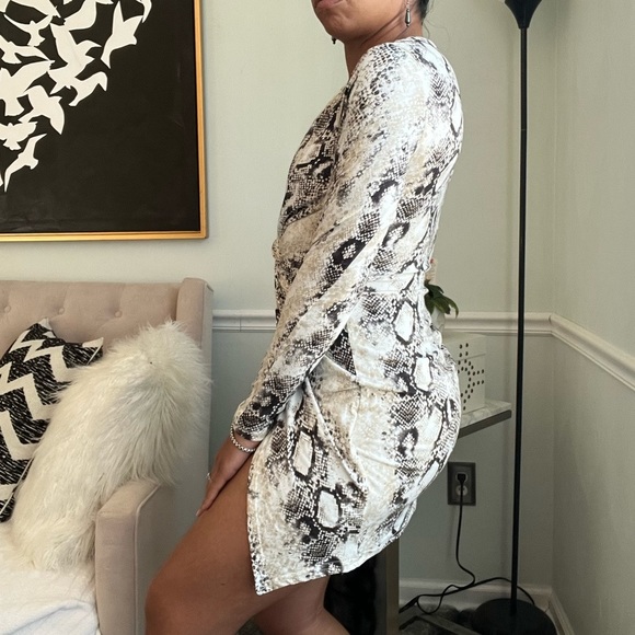 Windsor Snakeskin V-Neck Long Sleeve Faux Wrap Min Dress
