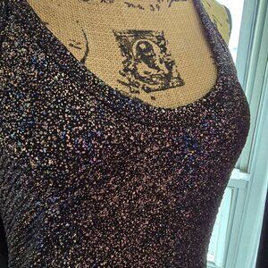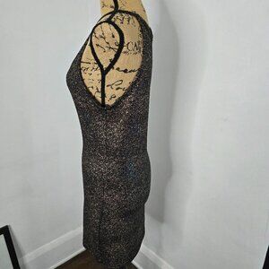 DETAILS: Plunging neckline and curve hugging mini dress with spaghetti straps and all over glitter. Textured glitter knit fabric. Moderate stretch.