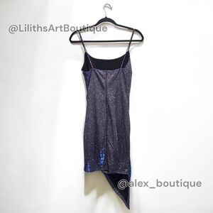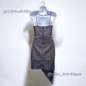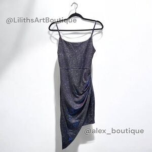 ☆Glitter sparkle scoop neck spaghetti strap high waist seam assymetrical tulip side runch bodycon dress with a back zipper closure