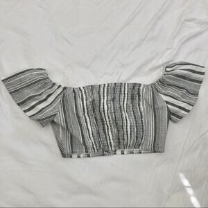 Windsor Striped Lace Up Crop Top Bell Sleeve Large