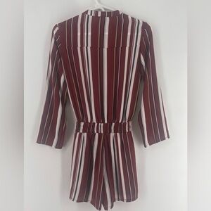 Windsor Striped Long Sleeve Romper Shorts Belted Women’s Size Medium EUC