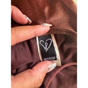 Windsor Sultry Strappy Stretch Cord Open Back Satin Brown Bodycon Mini Dress M